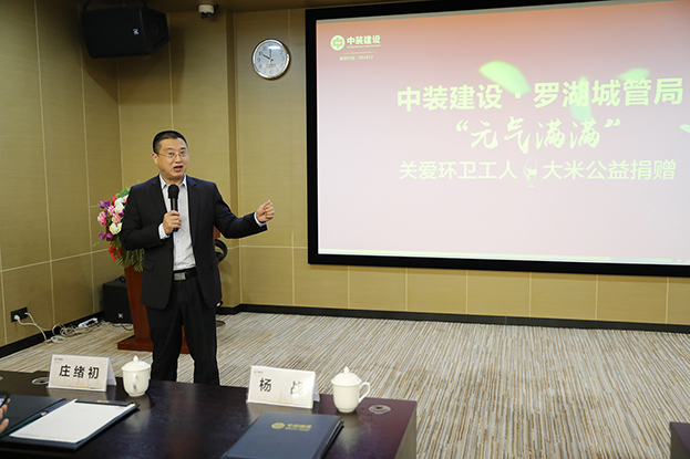 活動儀式上,中裝建設高級副總裁楊戰對環衛工人的默默奉獻表示了衷心的感謝。他表示,中裝建設主營業務是裝飾裝修,中裝的施工人員也是每天和泥巴磚頭打交道、穿熒光馬甲,跟環衛工人一樣都是平凡的崗位,創造了不平凡的業績。此外,楊戰總表示,近年來,中裝建設在快速發展的同時,始終懷著一顆感恩的心回報社會,董事長、總裁一直非常關心社會的各項事業,多年來致力于教育扶貧,開展一系列社會公益活動,努力通過各種形式服務社會、回饋社會。