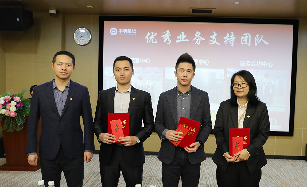 2月18日,中裝建設2018年度表彰暨2019年開工動員大會在總部四樓會議室舉行。中裝建設總裁莊展諾、高級副總裁于桂添、高級副總裁曾凡偉、高級副總裁楊戰、高級副總裁熊兆寬及公司各中心、部門負責人參加了此次會議。