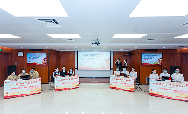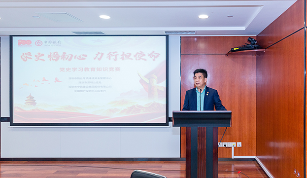 5月28日下午,中裝建設(shè)聯(lián)合中國(guó)銀行深圳中心區(qū)支行、深圳市物業(yè)專(zhuān)項(xiàng)維修資金管理中心、深圳市深圳公證處共同舉辦了以“學(xué)史悟初心 力行擔(dān)使命”為主題的黨史學(xué)習(xí)教育知識(shí)競(jìng)賽。中裝建設(shè)及三家共建單位黨委班子成員、四家單位黨員代表參加本次活動(dòng)。