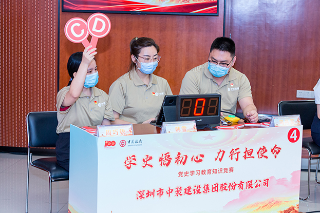活動(dòng)伊始,中裝建設(shè)副總裁黎文崇同志在致辭中強(qiáng)調(diào),此次黨史競(jìng)賽活動(dòng),既是貫徹落實(shí)黨中央黨史學(xué)習(xí)教育決策部署的一次具體行動(dòng),也是中裝建設(shè)與中國(guó)銀行深圳中心區(qū)支行、深圳市物業(yè)專(zhuān)項(xiàng)維修資金管理中心、深圳市公證書(shū)等參賽單位構(gòu)建“黨建同心圓”的一次嘗試,有效促進(jìn)了彼此的溝通交流。希望中裝建設(shè)以此次活動(dòng)為契機(jī),進(jìn)一步加深與中國(guó)銀行深圳中心區(qū)支行、物業(yè)專(zhuān)項(xiàng)維修資金管理中心以及市深圳公證處的合作,共同推動(dòng)黨建和事業(yè)邁上新的臺(tái)階,以?xún)?yōu)異的成績(jī)慶祝建黨100 周年。