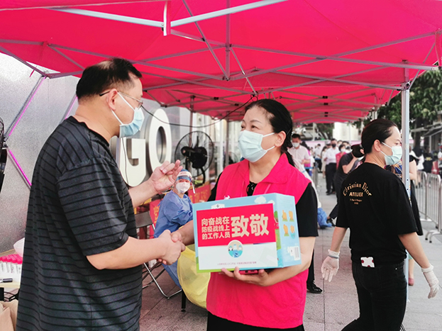 當前疫情防控正處在關鍵階段,6月7日下午,中裝建設黨委聯合人民橋社區人大代表聯絡站積極響應倡議,帶頭加強個人防護,帶頭宣傳引導,帶頭走進社區,開展“走進社區 關懷一線”慰問活動,為人民橋社區抗疫一線工作人員送去水果、點心和茶飲,向奮戰在防疫戰線上的工作人員致敬,助力社區一線疫情防控工作,齊心協力,早日打贏這場硬仗。